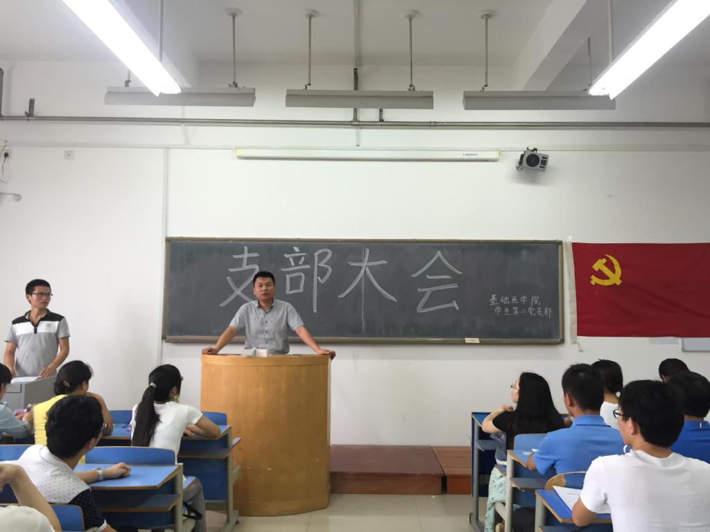 支部书记徐里老师宣读了《基础医学院各支部党员“三严三实”专题教育计划》,并按照学校党委“三严三实”专题教育的要求对同学们提出了殷切的希望:一是要坚守理想信念,严以修身、严以律己,不断加强党性修养,永葆党员先进性,牢固树立正确的六观,保持高尚的道德情操和健康生活情趣;二是要勇于担当,谋事要实、创业要实、做人要实,在实践中历练自身;三是要追求卓越,心怀抱负,做一名忠诚、实干、担当的新时代青年典范,为党旗增辉,为母校添彩;四是要在校园安全稳定、就业帮扶、毕业生派遣、文明离校工作中,充分发挥党员的先锋模范作用,以实际行动带领全体毕业生顺利、愉快地度过毕业季。