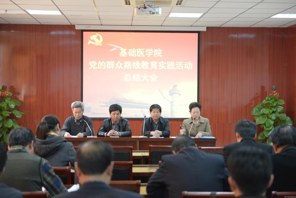 2014年11月4日下午,基础医学院在综合楼BS820召开党的群众路线教育实践活动总结会。学校党的群众路线教育实践活动第二督导组组长郭德欣同志、第二督导组成员冯民生同志出席会议。基础医学院领导班子成员、学科及教研室主任、支部书记、科级干部、民主党派代表人士、学生代表参加会议。基础医学院党委副书记詹向红同志主持会议。