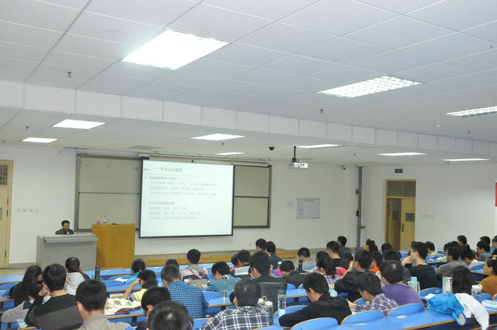 10月24日晚,基础医学院在3楼阶梯教室举办第二期“自主学习”讲坛,我校教育研究与教学评价中心呼海涛主任应邀作中医学专业认证知识专题解读和座谈。基础医学院党委副书记朱平生、学工办主任徐理、全体辅导员及中医专业仲景班在校生100余人参加。讲座由朱平生副书记主持。