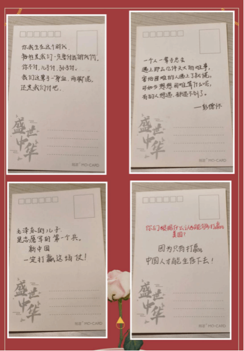 活动现场,影片中“我们这代人,一身血两脚泥,还是我们付吧”的铮铮誓言、“和平,是拿命换来的”的深刻台词引发强烈共鸣。观影结束后,同学们以“信仰对话”的形式,在明信片上书写下触动心灵的台词与思考。“当松骨峰上最后的战士用身体堵住炮口时,我真正读懂了什么是‘最可爱的人’”,—张张明信片承载着青年对英雄的致敬,字里行间跃动着新时代青年的精神觉醒。