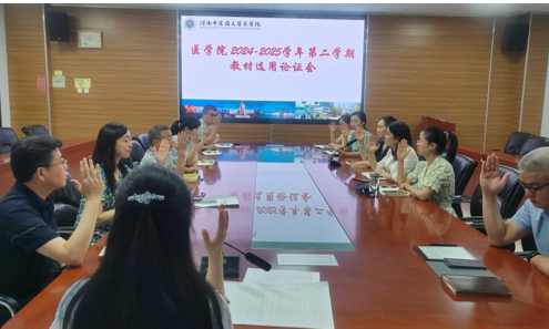 本网讯(文、图/赵西茹) 为全面落实《河南中医药大学教材选用管理办法》(河中医政〔2023〕134号)要求,进一步加强教材规范化管理,医学院于2025年7月15日组织召开2024-2025学年第二学期教材选用论证会。医学院教材建设工作小组成员参加此次会议,会议由副院长冯龙主持。