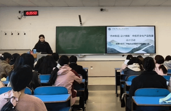 活动深度融合“药食同源”“四季养生”“治未病”等健康智慧与现代美育理念。在创意设计环节,同学们围绕选定主题,将中药材特性、养生智慧与现代审美需求融入创作之中,有的作品以二十四节气为线索设计系列包装,有的则聚焦药食同源食材,通过视觉语言传递其养生功效。现场气氛活跃,学生们或细致绘制设计草图,或热烈讨论材料选择,将专业所学转化为具象的创意方案,展现了良好的创新思维与实践能力,是学院推动创新创业教育与专业教育同向同行的生动实践。
