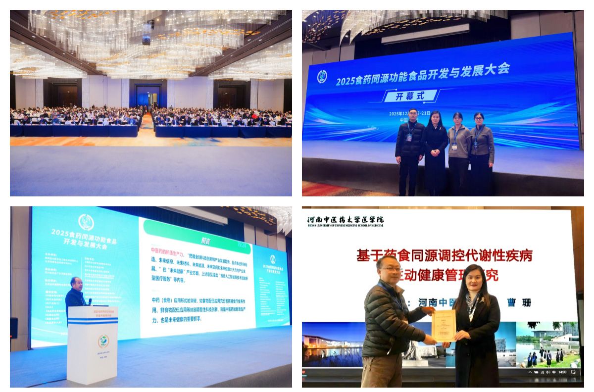 此次大会为推动食药同源领域“政、产、学、研”协同创新提供了重要平台,也为我校进一步拓展食药同源研究方向、深化相关领域合作带来了机遇。今后,医学院将依托河南省中医药主动健康工程技术研究中心、河南省中医药防治代谢性疾病主动健康工程研究中心等省级平台,围绕“食药同源”深入开展理论探索、关键技术攻关、产品研发与成果转化,为推动食药产业高质量发展、服务“健康中国”建设持续贡献智慧与力量。