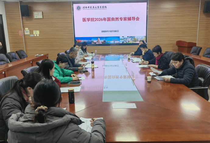 本网讯(文/图 郑关民)为精准备战2026年国家自然科学基金(简称“国自然”)申报,医学院于2025年12月 30日在教学实验楼A447会议室举行国自然专家辅导会。会议特邀郑州大学基础医学院副院长曹靖、郑州大学公共卫生学院副教授晋乐飞、河南中医药大学第一附属医院儿科副主任医师陆相朋担任辅导专家,学院拟申报2026年国自然项目的科研骨干到场参会。医学院副院长李寒冰主持本次会议。